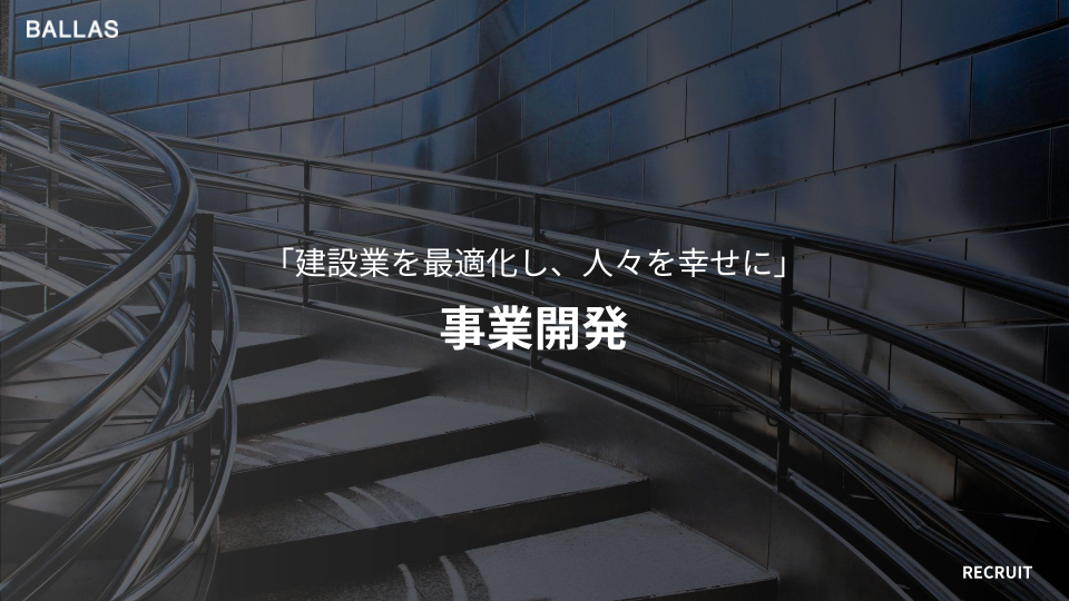 BALLASは「建設業を最適化し、人々を幸せに。」をミッションに掲げ、建設サプライチェーンの最適化に取り組むスタートアップです。