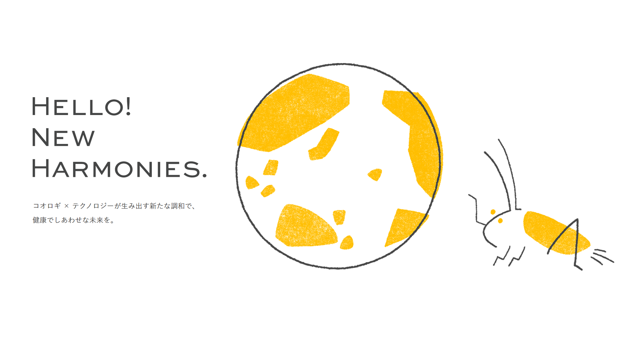 グリラスは「Hello! New Harmonies.」というビジョンを掲げ、コオロギの力で生活インフラに革新を起こし、世界に新しい調和を生み出していきたいと考えています。