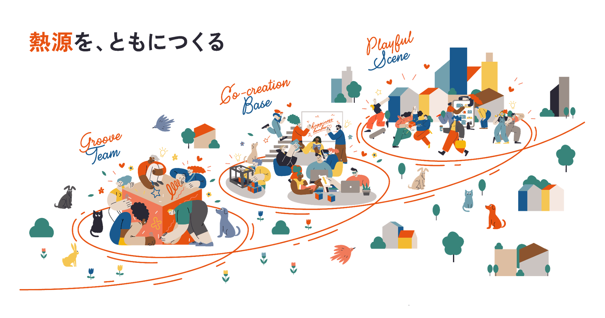 『「都市」も「地方」も「働く」も「暮らす」も もっとオモシロくできる!』というビジョン、そして『熱源を、ともにつくる』というバリューを実現すべく、多方面に影響を与えることができる“場づくり”を行う仕事です。