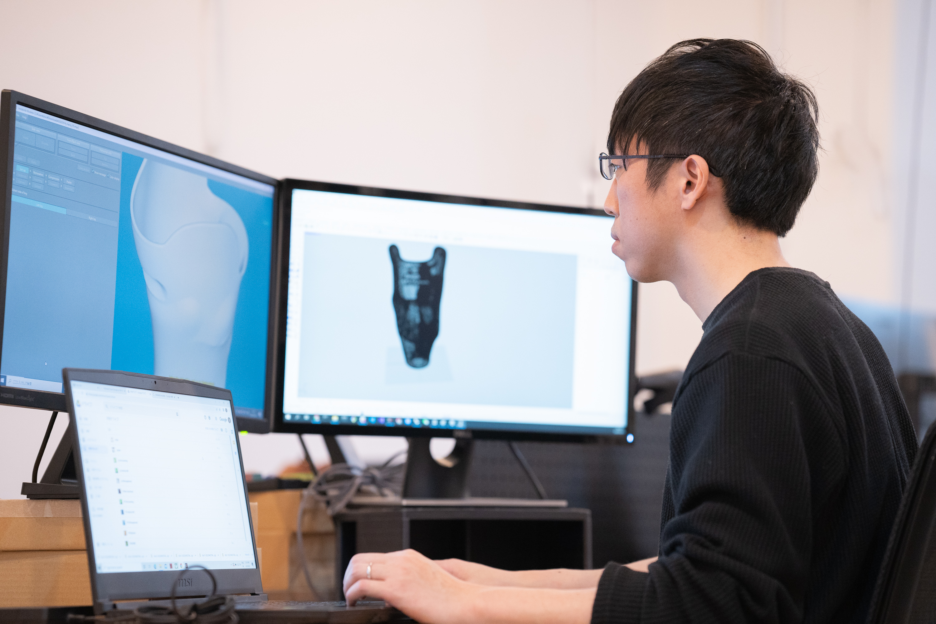 現在、義肢装具設計をオンライン上で完結できるクラウド型3D CADシステムを自社開発中です。