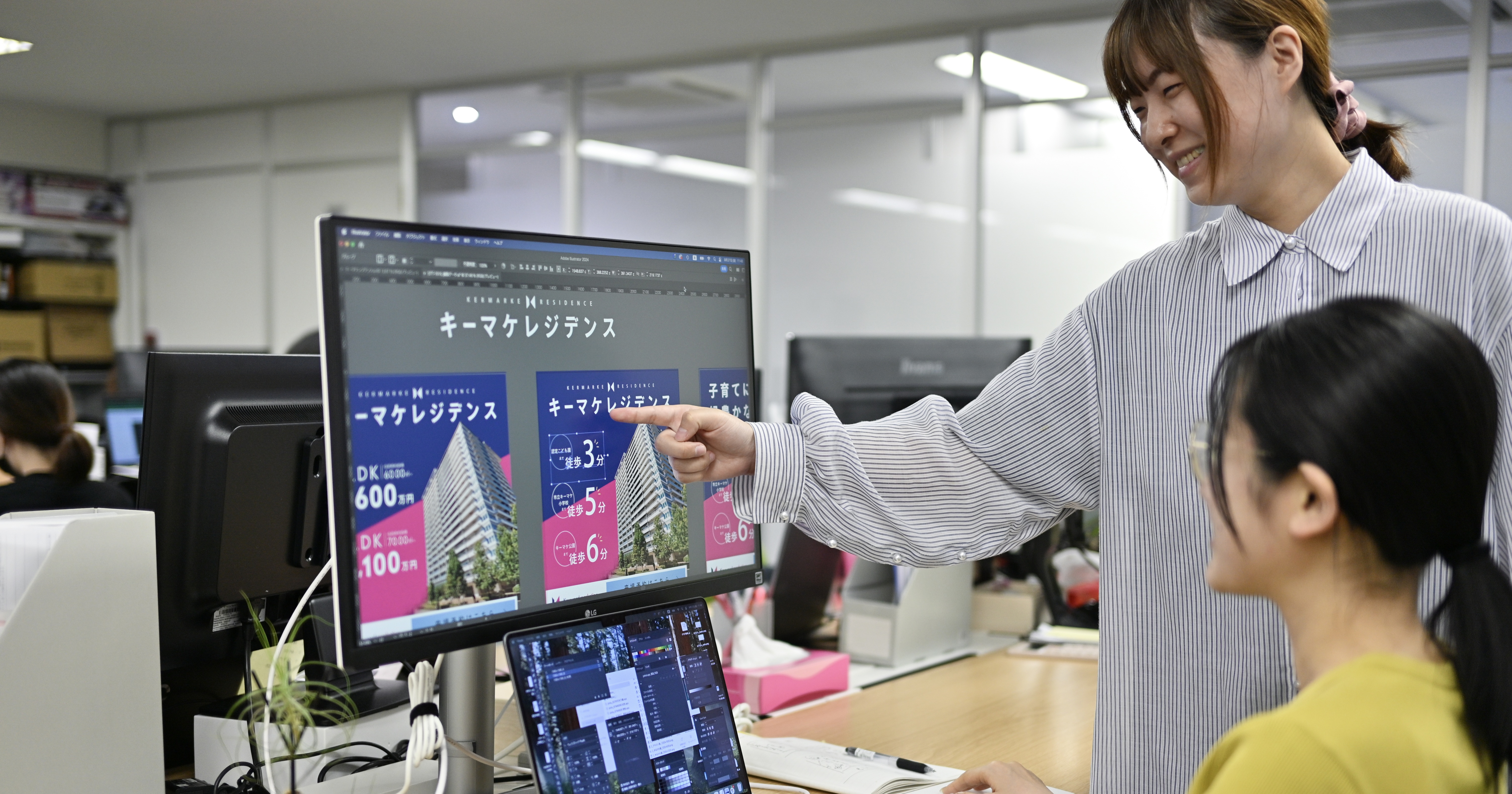 いろいろな部署の担当者と、直接コミュニケーションを取りながら仕事をすすめていただくため、依頼者の意図を汲み取るコミュニケーション能力やヒアリング力が求められますが、ポジティブなフィードバックを直接もらえるため、やりがいにつながります。