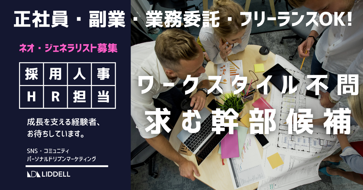 LIDDELLは、このようなネオ・ジェネラリストとして活躍できる「HR運用担当者/戦略担当者」を募集しています。
