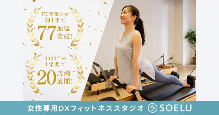 そのチャレンジの結果、スタジオSOELUはわずか13ヶ月で124加盟という、女性向けフィットネスFC業界では異例のスピードで成長を遂げました。