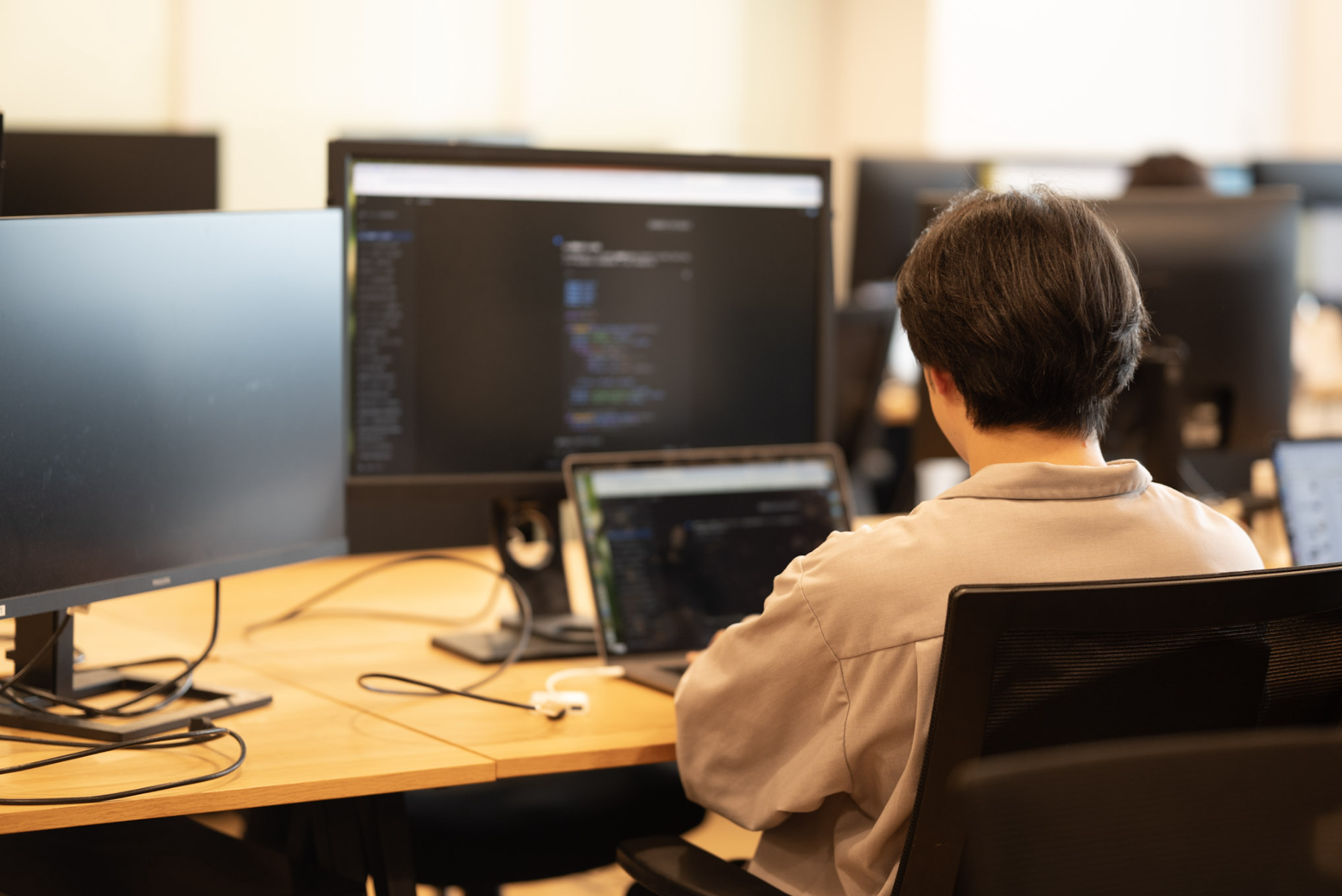 主に技術(プログラミング)の研修を行います。